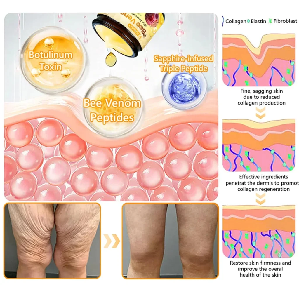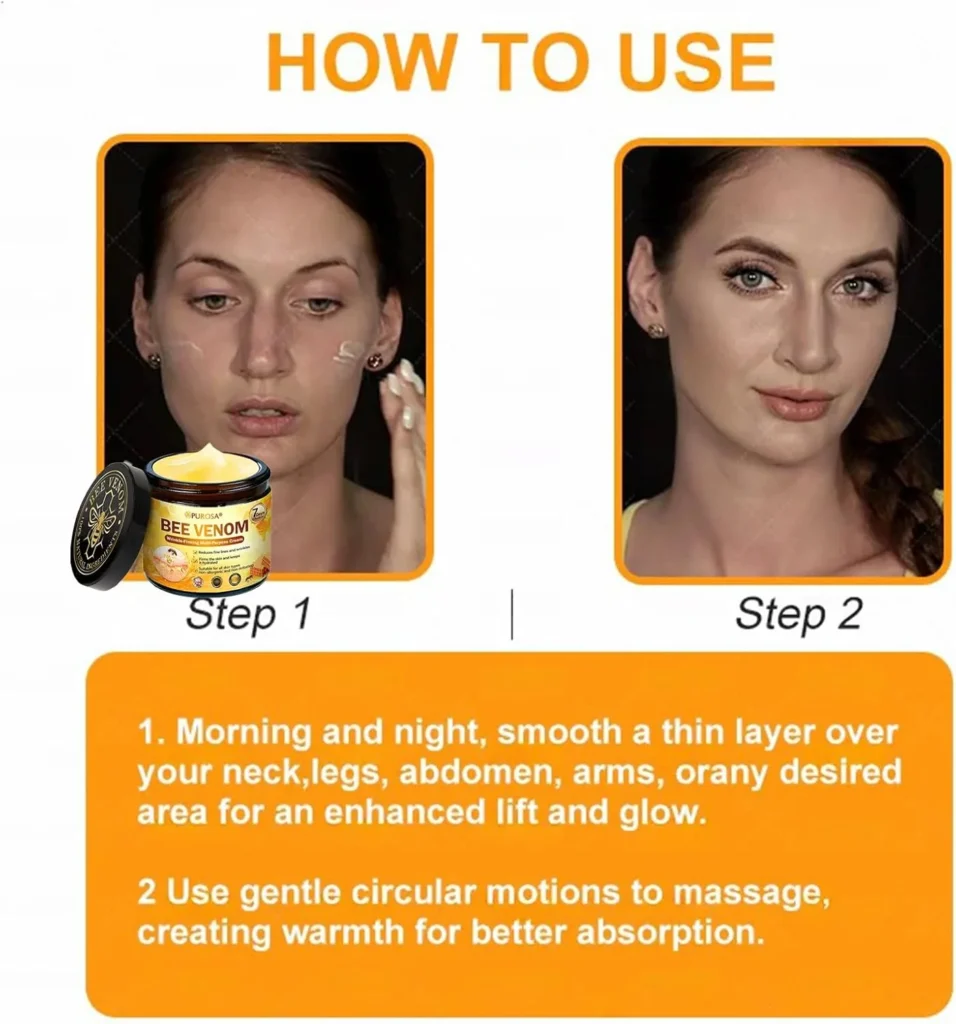 The creation of LOVILDSĀ® Bee Venom Skin Restoration Cream stems from the factors of collagen loss and hormonal imbalance, which contribute to skin concerns like wrinkles, aging, sagging, and fat accumulation. By incorporating this product into your routine, you can effectively address issues such as stretch marks, wrinkles, and sagging skin, while enhancing the appearance of your abs, breasts, and buttocks. Moreover, it aids in tightening loose skin and offers various other advantages. Rest assured, LOVILDSĀ® Bee Venom Skin Restoration Cream is crafted from 100% natural ingredients, ensuring both the safety of your skin and the provision of a high-quality product.