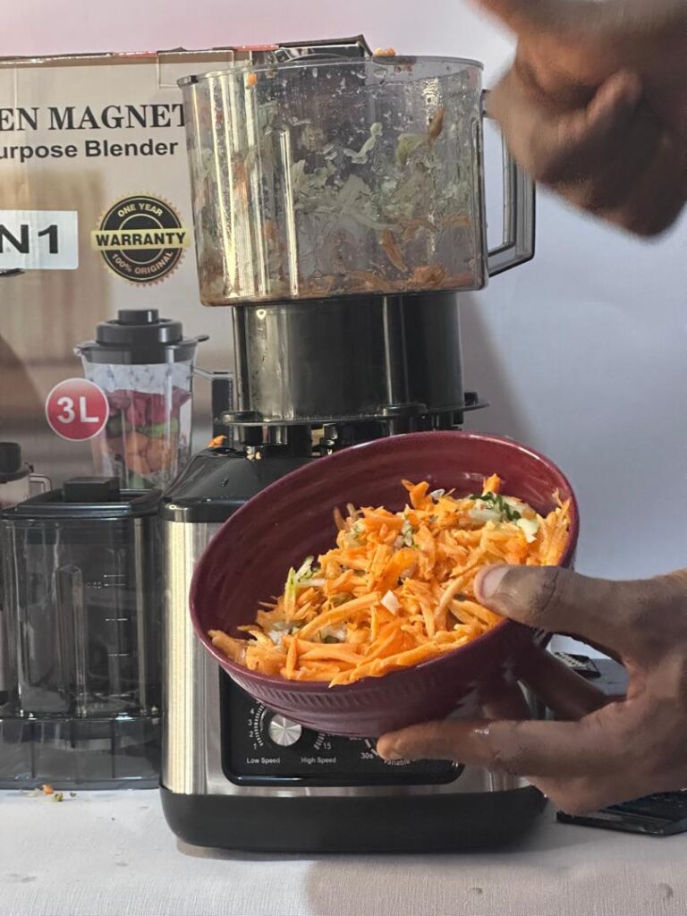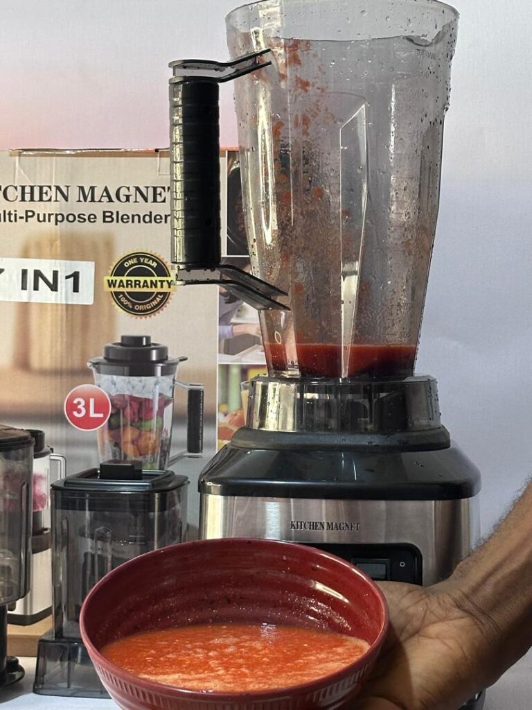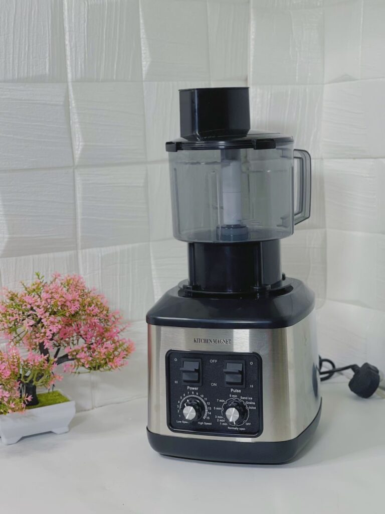 • 7-in-1 Design: Effortlessly switch between blending, chopping, slicing, shredding, and even pounding yam with three interchangeable blades and a spacious food processor bowl.Effortless Chopping: Say goodbye to tedious knife work. The Kitchen Magnet Blender tackles chopping vegetables, grinding beans Tigernuts and meat, with ease.