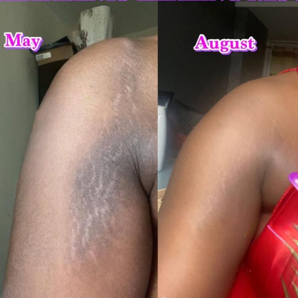 “Please this product works. I was skeptical at first. After one month, my skin texture changed completely. Softer, smoother, and the stretch marks are lighter.”